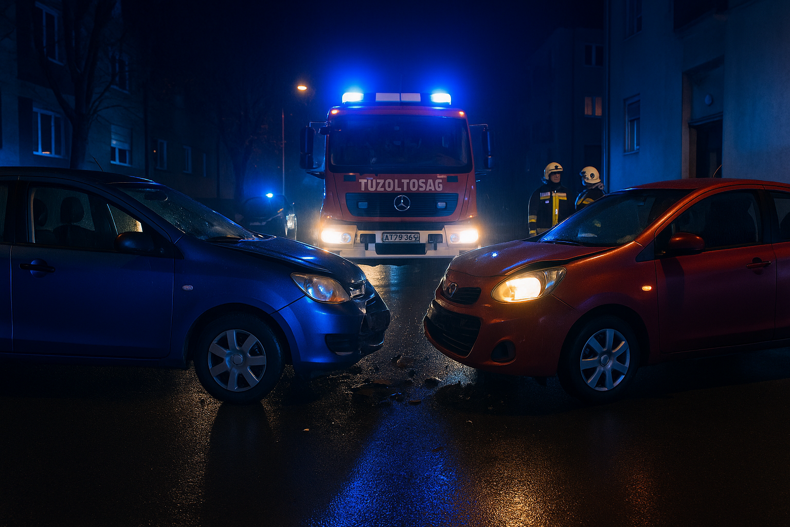 Este két személygépkocsi ütközött össze Nyíregyházán, a Debreceni úton. A város hivatásos tűzoltói perceken belül a helyszínre érkeztek, ahol áramtalanították a járműveket, és biztosították a területet a további beavatkozásokhoz. Személyi sérülésről nem érkezett információ.