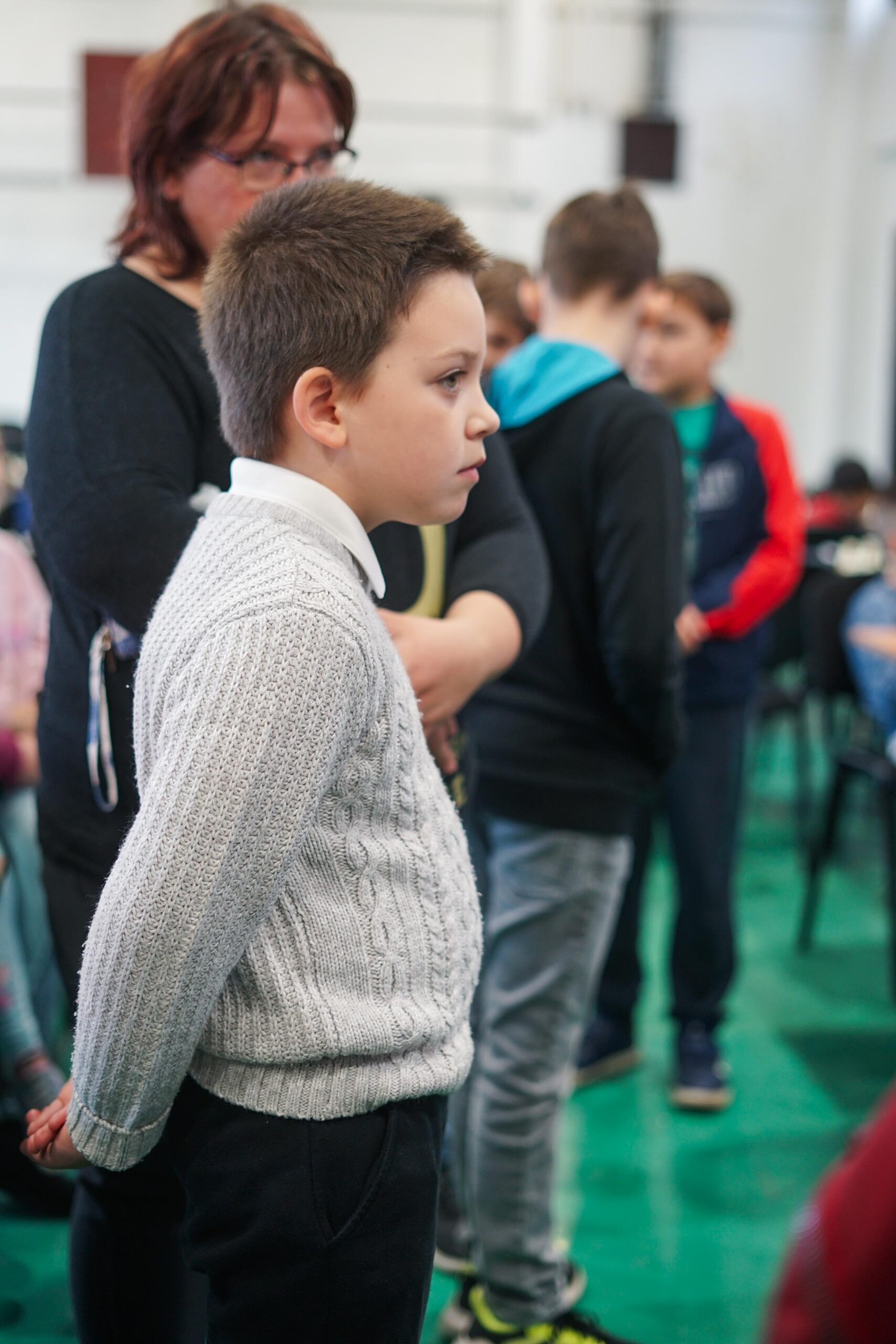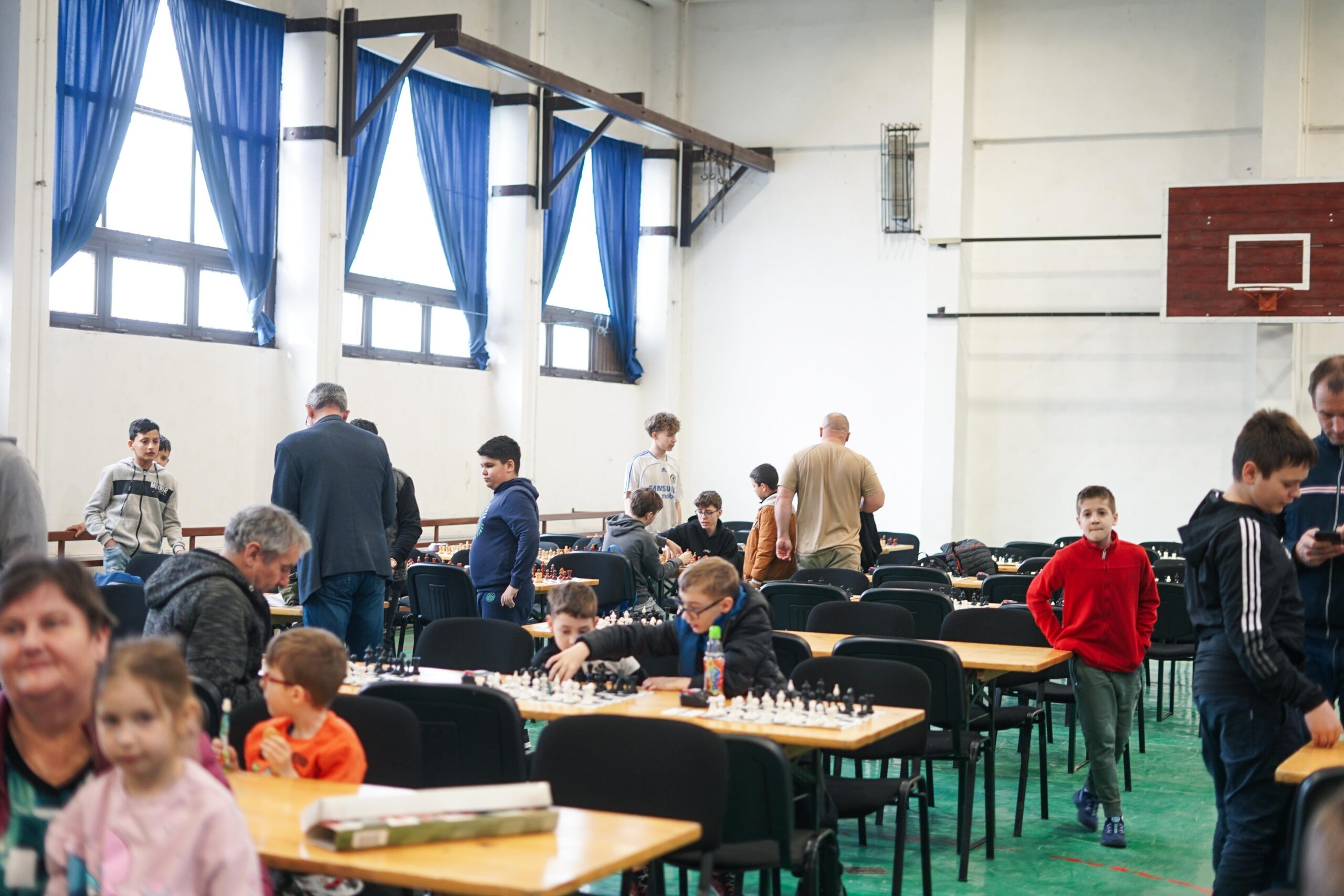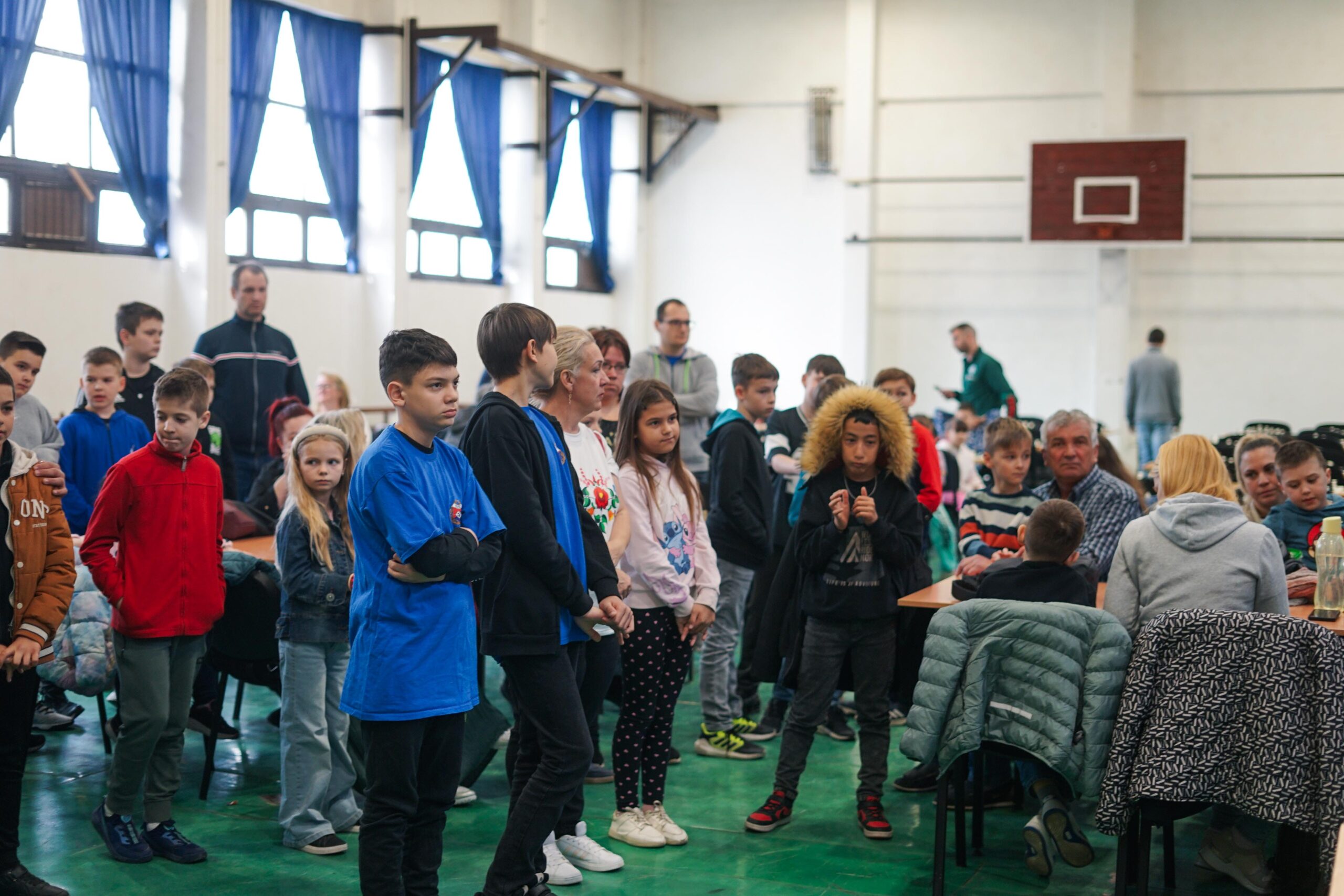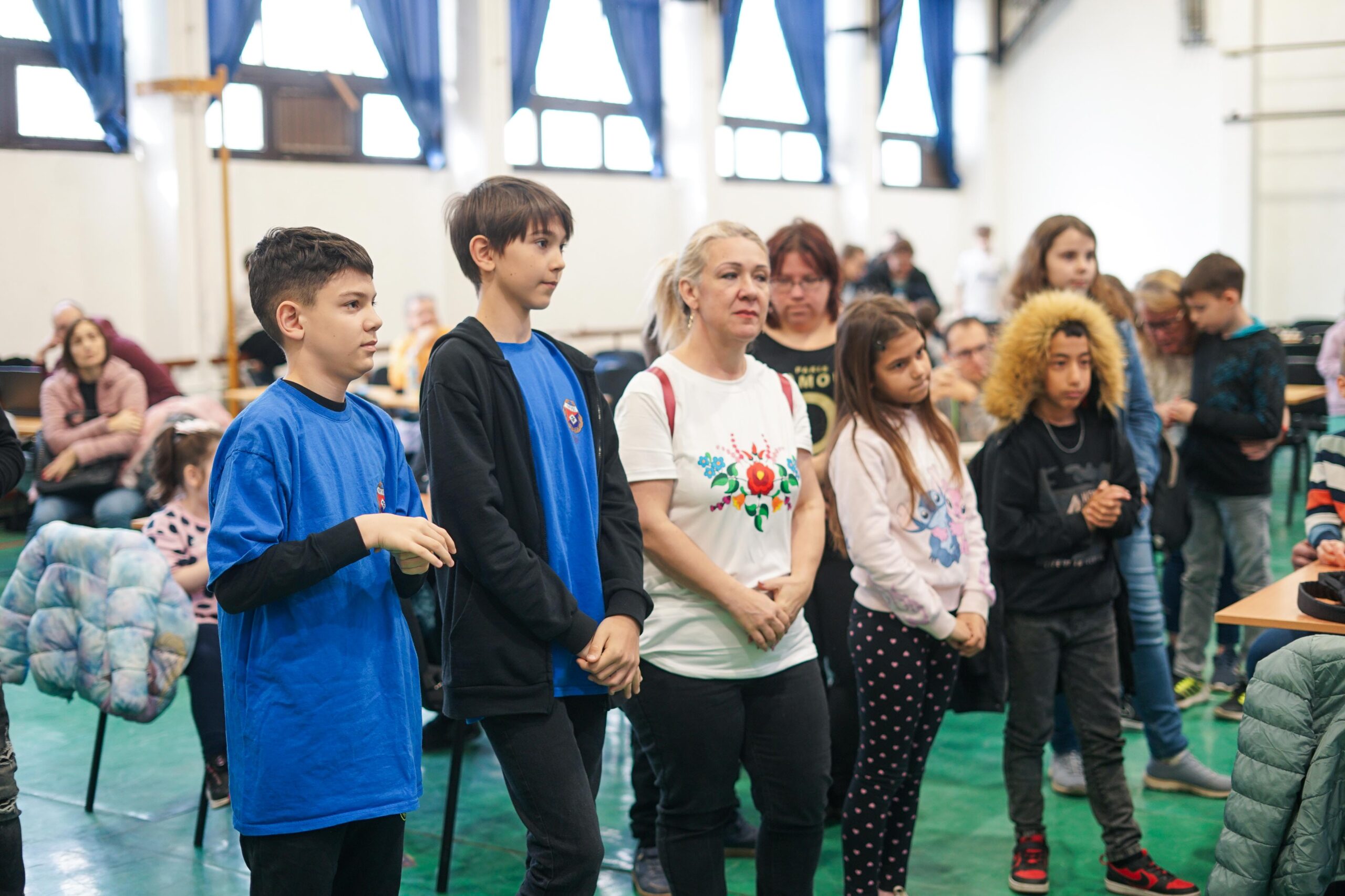 A délelőtt folyamán a termekben egyszerre volt jelen a versenyekre jellemző feszült csend és a gyermeki lelkesedés. A táblák fölé hajoló fiatalok között akadt, aki rutinosan kezelte az órát, mások még bátortalanul tették meg első versenylépéseiket.