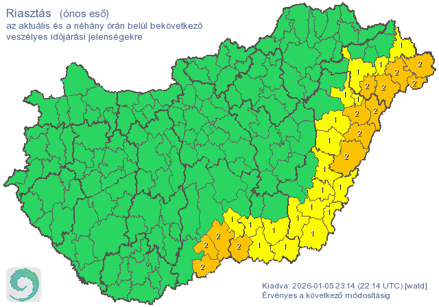 Forrás: HungaroMet Veszélyjelzés (2026.01.05. 21:47)